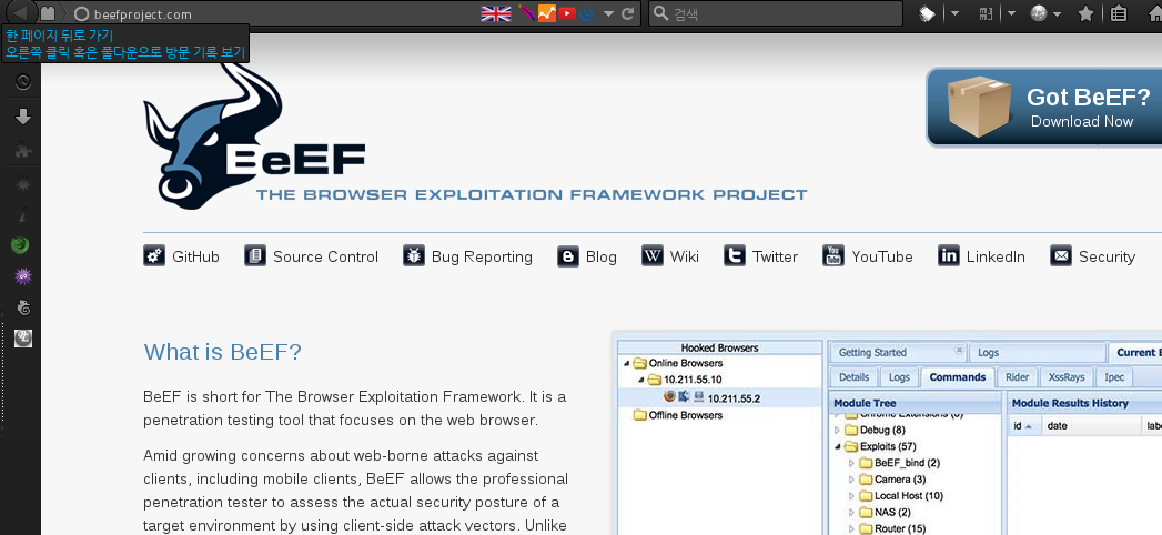 BeEF라는 툴을 들어보셨나요? 브라우저 후킹,XSS, Exploit 등 굉장히 유명한 툴 입니다. 이번에는 BeEF 툴 설치 과정을 다뤄볼까 합니다. 아주 간단합니다.