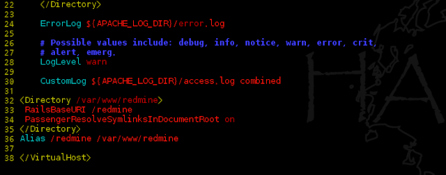 다음 Apache에서 redmine 을 읽을 수 있도록 000-default.conf를 수정합니다. #> vim /etc/apache2/sites-available/000-default.conf
