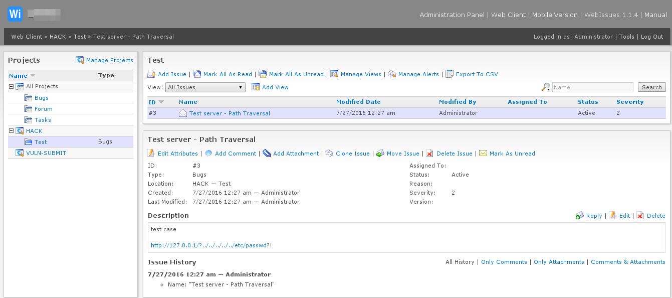 설치 후 명령행을 통해 실행하면 webissues가 열리고 아까 만든 서버 주소를 넣어주면 client tool을 이용하여 작업이 가능합니다.