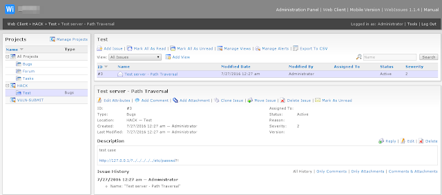 찾던 중 webissues 라는 툴킷을 찾게 되었습니다. 이 Issue tracker는 php 를 통합 웹서버와, 브라우저 또는 Client 툴을 이용해서 사용할 수 있는 아주 쓸만한 툴킷인 것 같습니다. (개인적인 목적 및 구성에 만족)