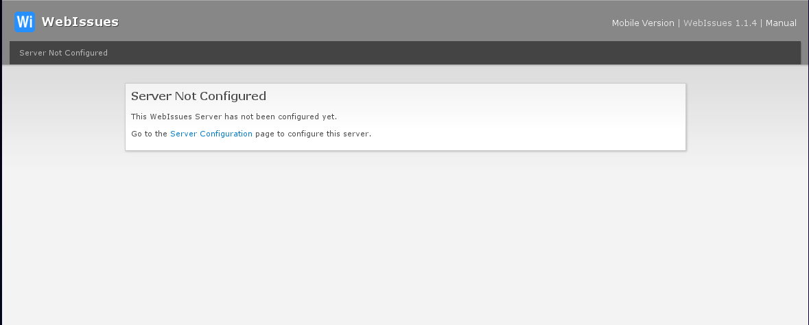처음 접속하면 server 가 설정이 안되어있다고 나옵니다. Server Configuration 을 눌러 설치를 진행합니다.