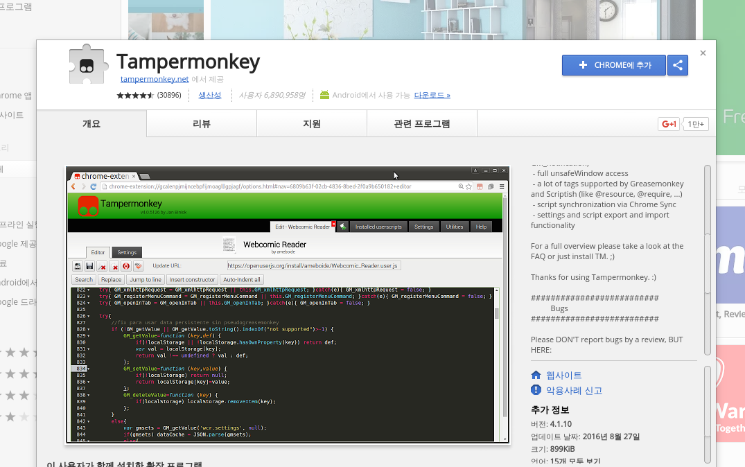 - https://chrome.google.com/webstore/detail/tampermonkey/dhdgffkkebhmkfjojejmpbldmpobfkfo?hl=ko