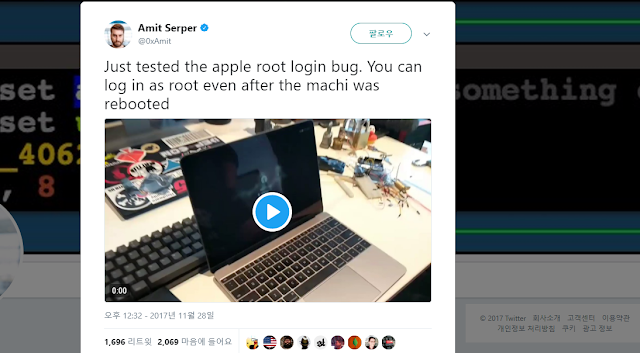 최근 macOS High Sierra 버전에서 권한 상승 취약점이 있었습니다. 일단 매우 간단하며 패스워드 공백으로 root 로그인 반복 시도 시 간헐적으로 넘어가지는 경우였죠.
