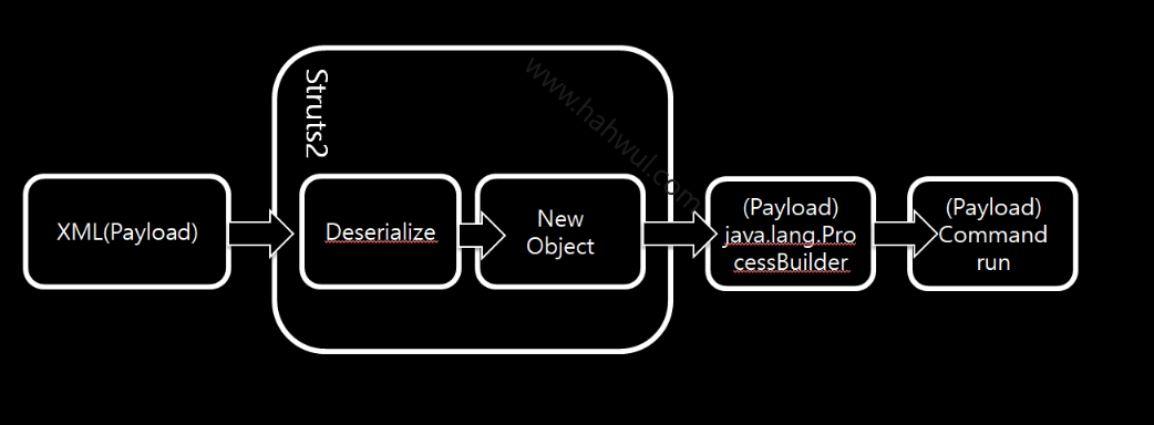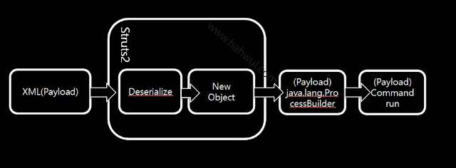 POST로 uri에 xml 요청을 던지는게 전부입니다. uri 주소는 REST API가 되겠구요. REST로 XML 데이터를 받은 Struts는 Deserialize를 진행하고 그 과정에서 객체가 로드되어 동작하게 됩니다. (REST로 오는 요청의 XML에 대해서 검증하는 부분이 추가되면 패치되겠네요)