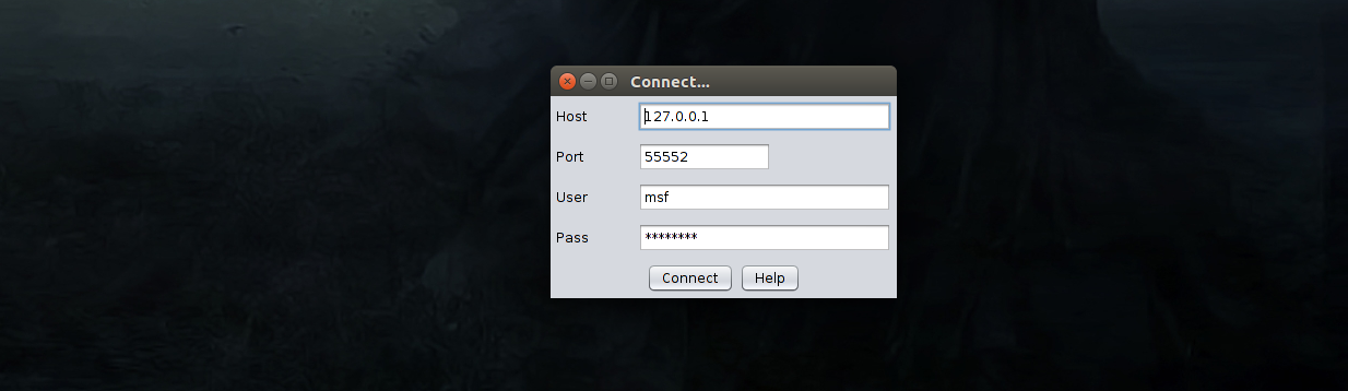#> hahwul (./msfconsole) HAHWUL #> load msgrpc Pass=secret_password [] MSGRPC Service: 127.0.0.1:55552 [] MSGRPC Username: msf [] MSGRPC Password: secret_password [] Successfully loaded plugin: msgrpc