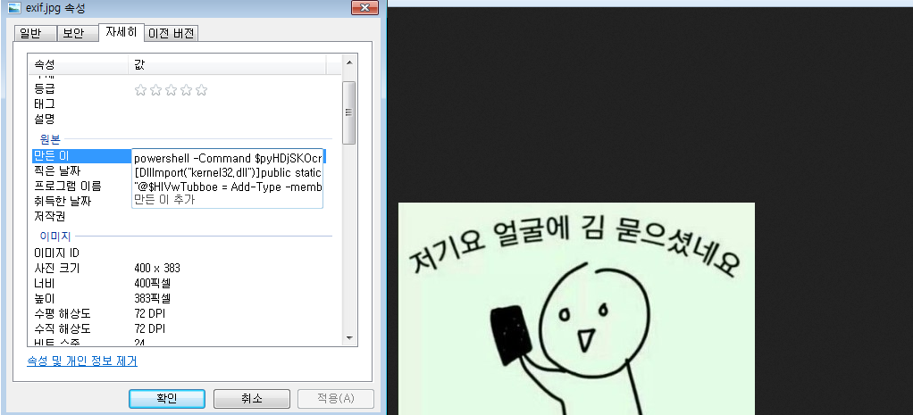 이제 exif.jpg 이미지의 artist 영역은 제가 입력한 값으로 들어가게 됩니다. 그래서 쭉 진행하다보니..