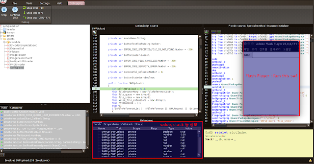 아무튼 요즘 swf 취약점쪽으로 툴도 만드는겸 분석 방법에 대해 정리해둘까 합니다. (오늘은 디버깅이군요!)