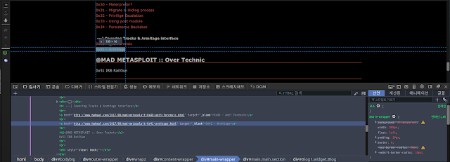 일반적으로 웹 브라우저에서 소스코드 확인 시 소스보기(Ctrl+U)를 통해서 많이 확인합니다. 저 또한 빠르기 때문에 Ctrl+U를 많이 사용하지요. 다만 때에 따라선 검사기가 매우 유용할때가 있습니다. 이 친구는 웹 페이지 영역의 구간과 HTML 소스를 연결시켜 보여주며 바로 속성이나 값에 대해 수정할 수 있고 CSS 또한 쉽게 테스트할 수 있습니다.