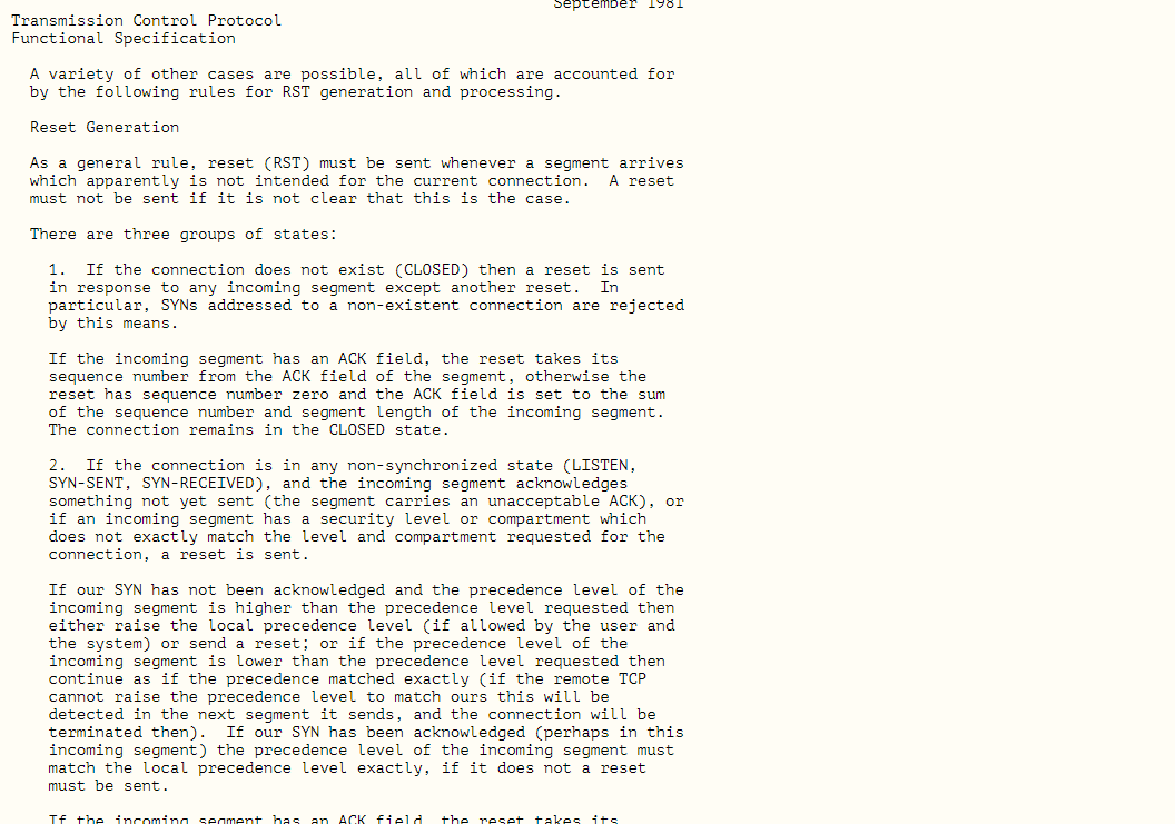 1981년도 RFC793 문서를 보면 RST에 대한 이야기가 있습니다. https://datatracker.ietf.org/doc/rfc793/?include_text=1