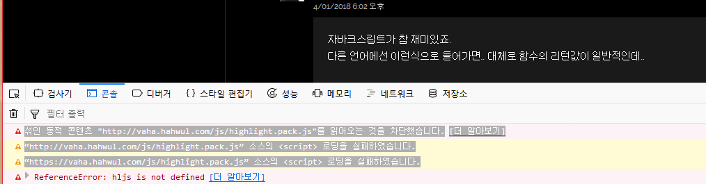 섞인 동적 콘텐츠 "http://vaha.hahwul.com/js/highlight.pack.js"를 읽어오는 것을 차단했습니다.[더 알아보기]