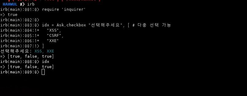 idx = Ask.checkbox "선택해주세요", [ # 다중 선택 가능