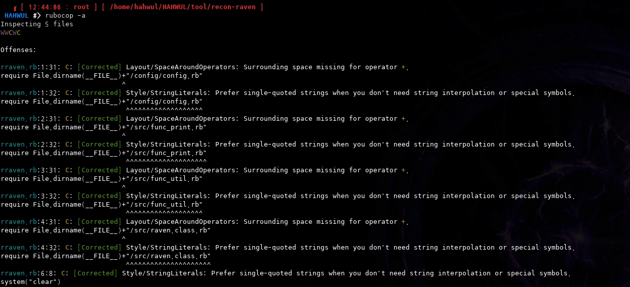 지난번에 rubocop 사용 관련해서 지금 틈내서 개발중인 recon-raven 쪽 코드로 돌려봤는데요.. 어마어마한 양이 나왔습니다.