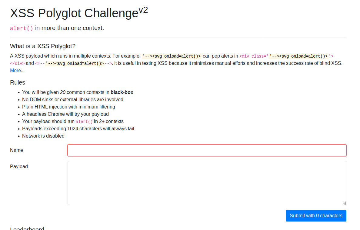 XSS Polyglot Challenge(v2)에 참여하며 XSS에 대한 고민을 더 해봅시다!