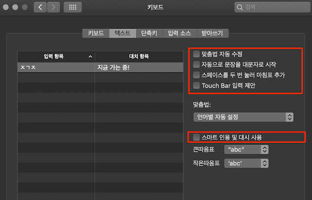 MacOS에서 맞춤법 자동 교정, 더블쿼테이션(따옴표) 변경되지 않도록 해제하기