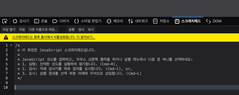 The scratchpad is deprecated from Firefox 72 version(스크래치패드 중단...)