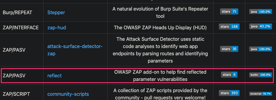 init 코드가 업로드된지 3개월로 얼마 안된 프로젝트입니다. 다만 기존 burpsuite의 reflected params를 대체할만한 ZAP의 확장 기능이나, 기능이 없었는데 이번에 좋은 확장 기능이 생긴 것 같네요.