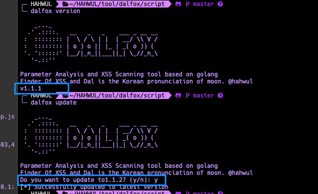 dalfox 1.1 버전대 업데이트에서 큰 부분 중 하나가 self-update입니다. 이전에 xspear, a2sv 등에서도 여러가지 방법으로 self-update를 지원했었는데 이번 dalfox는 바이너리로 컴파일되서 배포되기 때문에 고민이 좀 많았습니다. (이전까진 git command 기반으로 update 시켰거든요 😊)